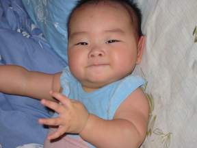 摁,居然无效?宝宝摊开手一看,气的小嘴扁进,小鼻孔张开。
