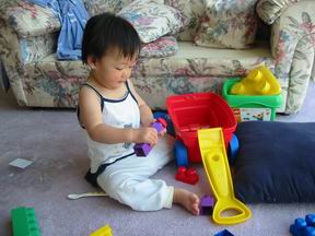 看,才把4快积木搭起来,就表现的跟得了奥斯卡奖似的。如此容易骄傲,家长教育的失败啊! :((
