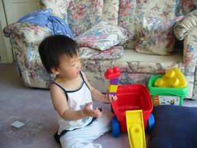 丫丫坐在我们的新家,专注的玩着她的积木。
