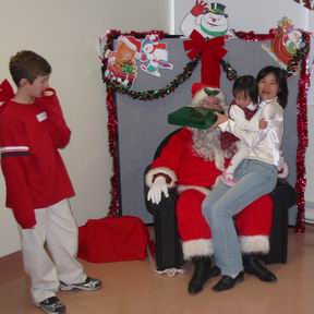 同样是拍照,不同的人就是有不同的结果。虽然ANDREA也不是很情愿和圣诞老人合影,但ANDREA妈妈的处理显然很好,至少没有象我,居然坐到了人家膝盖上。还好是老头,如果是个年轻英俊的男人,西西,回家可要有“好日子”过了。