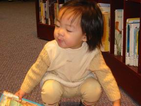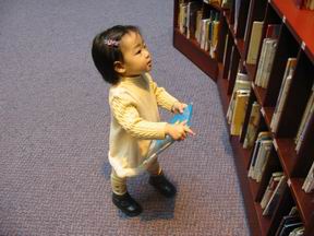 和丫丫去图书馆,丫丫现在很会自己像模像样的自己找书看了。还知道把拿出来的书放回原来的位置。