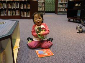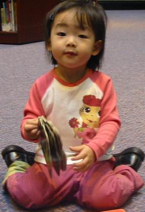 现在妈妈经常带着丫丫去图书馆借书和录象带。丫丫最近的新宠是WIGGLE,四个澳大利亚的大男孩。丫丫会和他们一起载歌载舞,还跳的很不错呢。